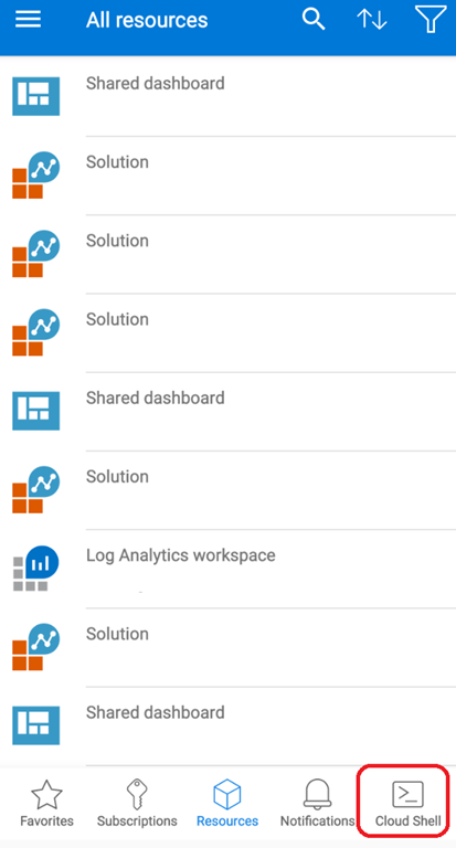 To start using Cloud Shell from your Azure mobile app, just hit the Cloud Shell button available (screenshot from Android, may differ in iOS)