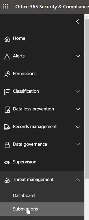 To start submitting suspicious content, logon to your Security and Compliance portal (https://protection.office.com) and reach out the Submission blade, available below the Threat Management section