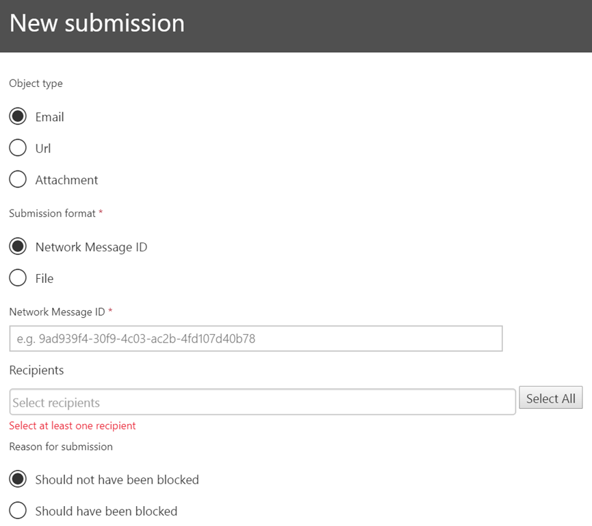 You can now fill a report with the details to be provided, including if required the email ID, email as EML file or attachment, with the action which should have been taken – blocked or not being blocked