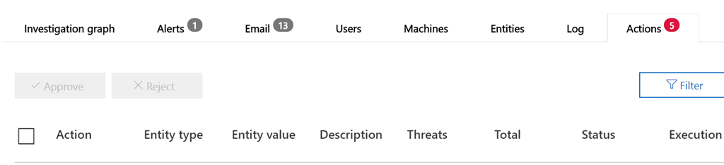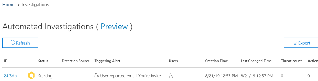 Administrator can then initiate an investigation on this/these item(s) by using the Investigate button; this will send the information to the automated investigation system