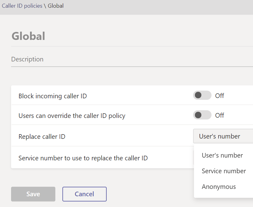 Teams administrators can define Caller ID policies to manage how user’s phone numbers are being displayed, either the ‘real’ user’s number, a ‘generic’ service number or anonymous caller.