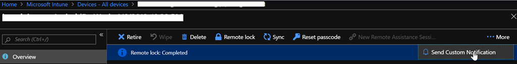 To send a custom notification to a specific device, logon to your Azure portal (https://portal.azure.com) or Intune portal (https://devicemanagement.microsoft.com) and go to the Intune\Devices (Azure portal) or the Devices (Device Management portal) section