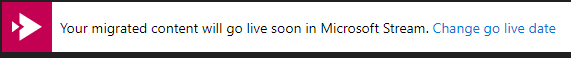When accessing Office 365 Video during this period, a banner will remind you the content migration will be completed soon and propose you to change the final go live date (if you want)