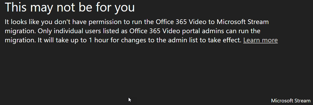 It looks like you don’t have permission to run the Office 365 Video to Microsoft Stream migration