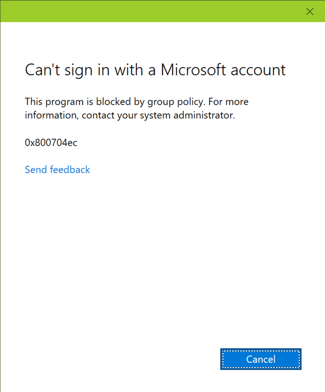 When trying to add a Microsoft Account (MSA) – which is required to link with my mobile phone, I ended with the error