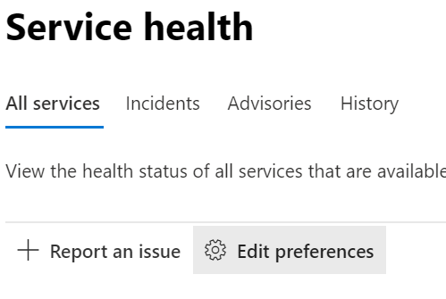 Do you know if this is being roled out in stages perhaps? or requires certain licensing. I was excited to stumble upon your blog post, but then checked and there is not the option to Edit Preferences (or even the Report an Issue) in my Service Health blade.