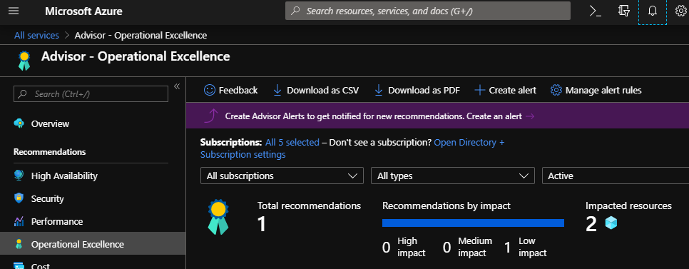 Well, now Azure Advisor is also able to give you specific advices to help you achieve Operational Excellence, helping you improving your process and workflows when using Azure services.