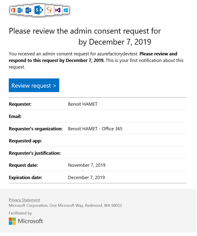 Good news, the admin consent process has been updated to be more streamlined; you can now configure a workflow to let Azure AD administrators review and approve/decline requests.