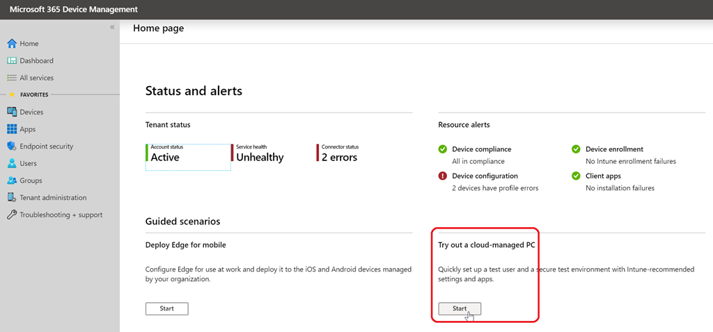 To start with this new capability you need to logon to your Device Management portal (https://devicemanagement.microsoft.com/) and access the Home blade