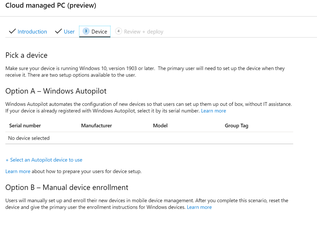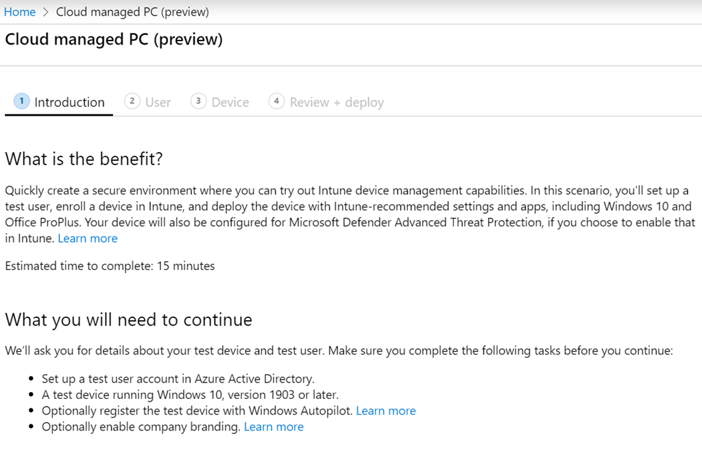 You will define a test user in your Azure Active Directory and a Windows 10 1903 (or later) device (optional). You can even use Autopilot and/or customize with your branding