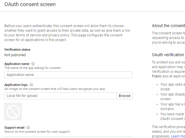 Once your Google API project has been created, configure the OAuth consent screen option of your project
