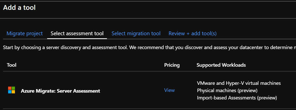 If you are starting with Azure Migrate, when you select the assessment tool you have to choose Azure Migrate: Server Assessment, which now include the physical assessment, from the Servers blade
