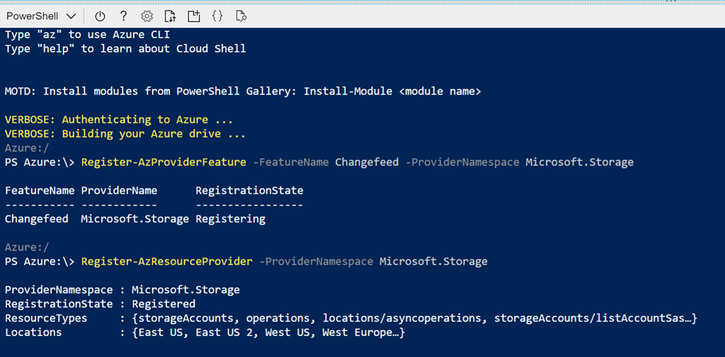 Register-AzProviderFeature -FeatureName Changefeed -ProviderNamespace Microsoft.Storage