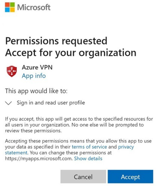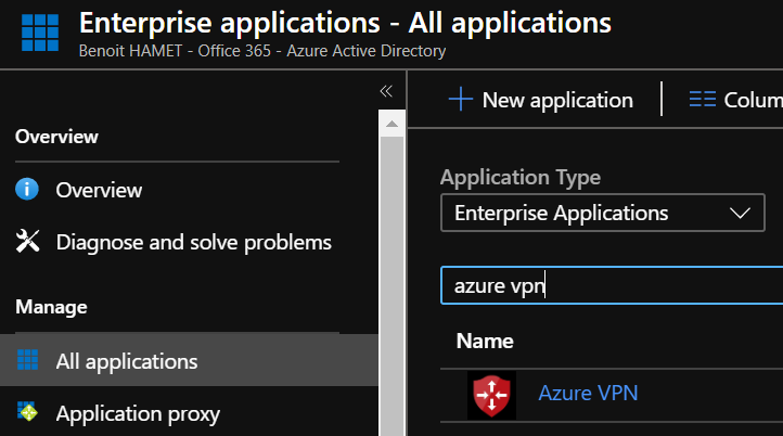 By granting the admin consent you will get a new Azure AD application called Azure VPN