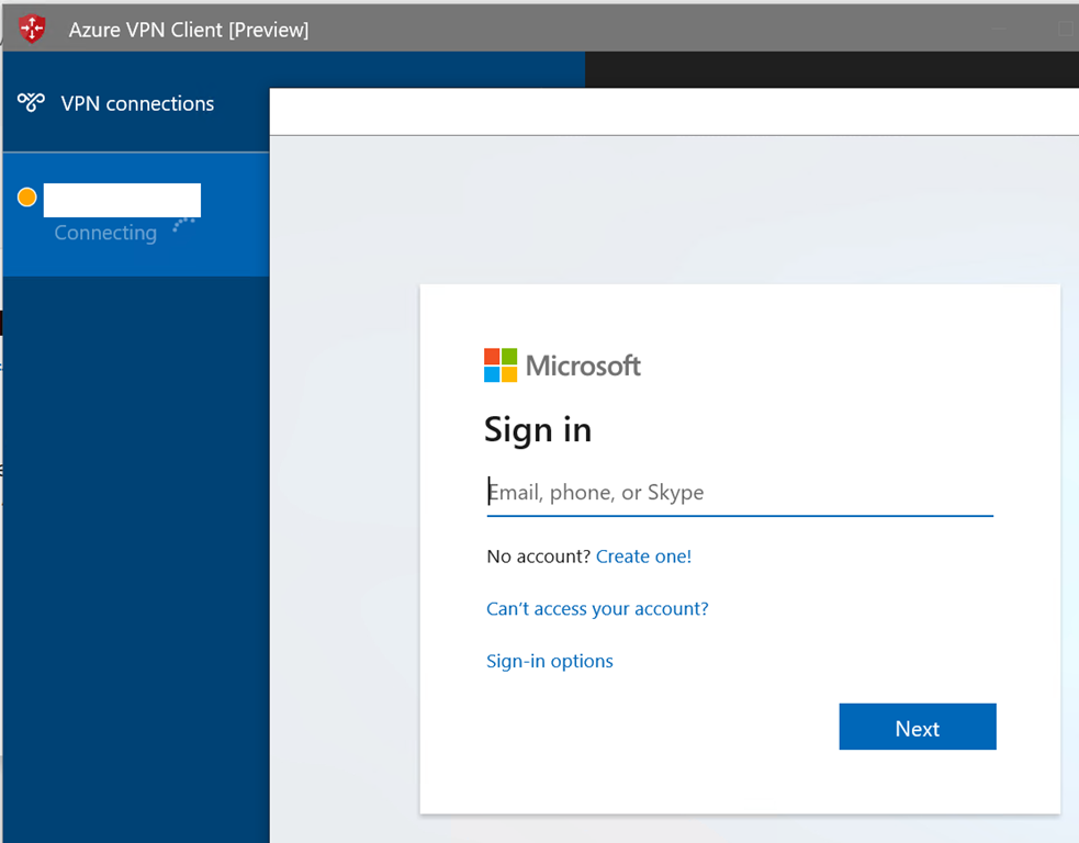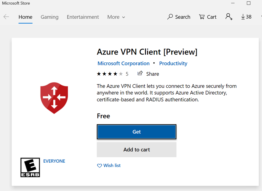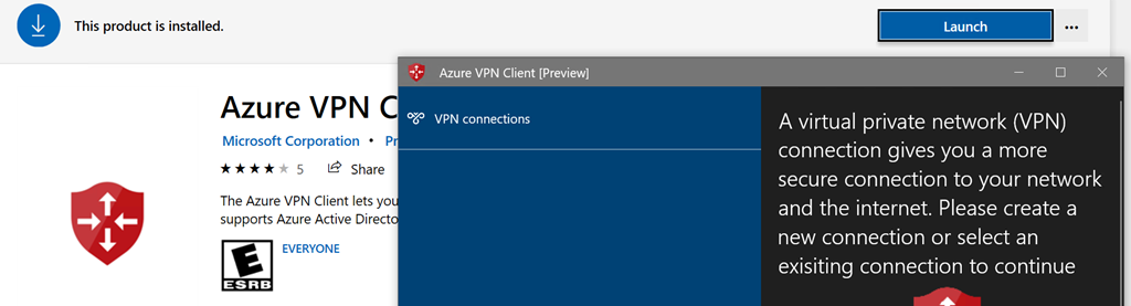 Then you need to get the Azure VPN Client which supports Azure AD authentication by adding the Azure VPN Client Azure AD application; the application is available through the Microsoft Store https://www.microsoft.com/p/azure-vpn-client-preview/9np355qt2sqb?rtc=1&activetab=pivot:overviewtab