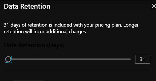 From the top, you have the various options to manage a daily cap and the data retention (a 7 days retention is always included, and you can not reduce to less than 30 days retention)
