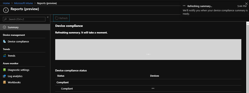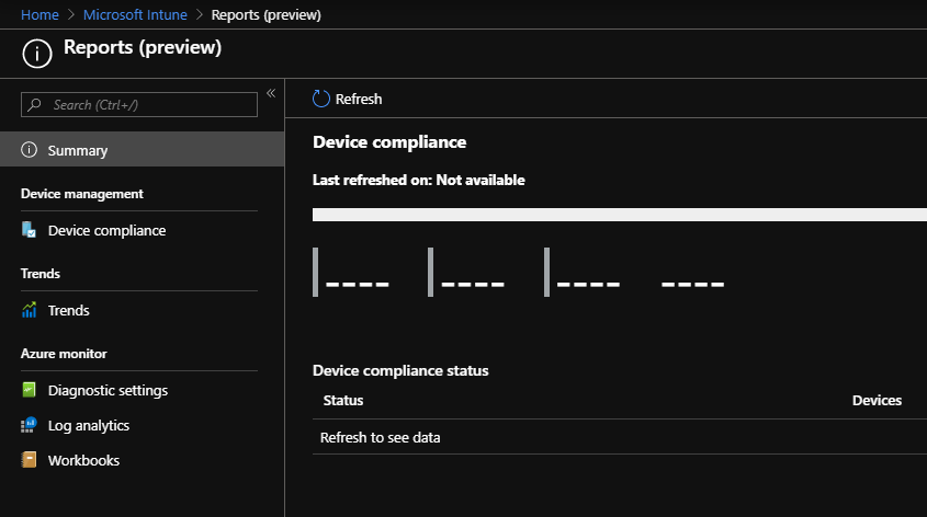 The first time you will access this blade, there will be no data and you will need to click on the Refresh button