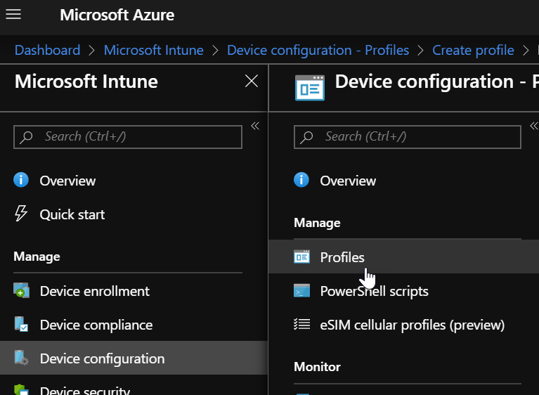 To start using, logon to your Azure portal (https://portal.azure.com/) and reach out the Intune\Device Configuration\Profiles or Device Management portal (https://devicemanagement.microsoft.com/) and reach out the Device\Configuration profiles blade