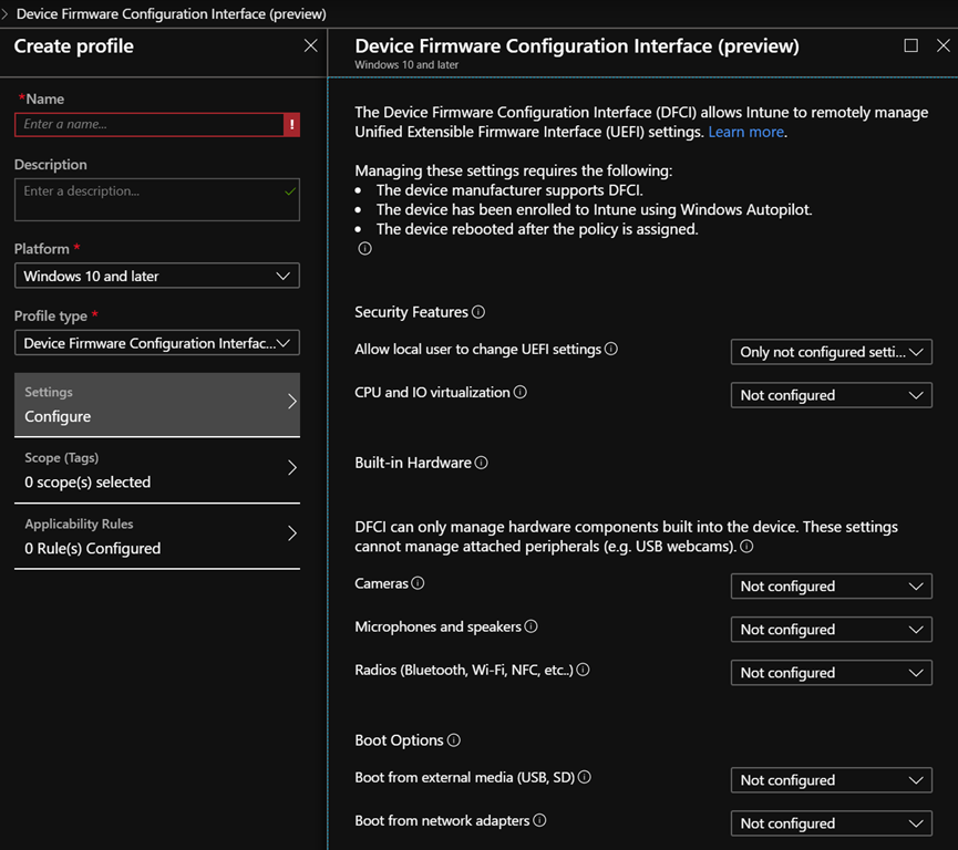 Microsoft Intune now allows you to create a device configuration profile to manage and lock down firmware settings.