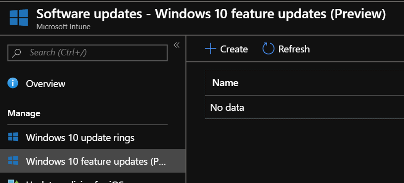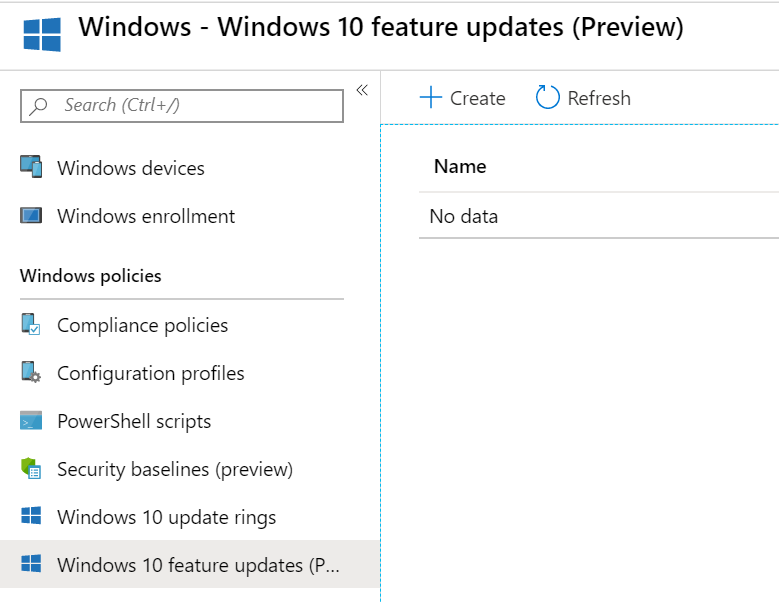 There you will see the new Windows 10 feature updates configuration blade from which you can create the policy