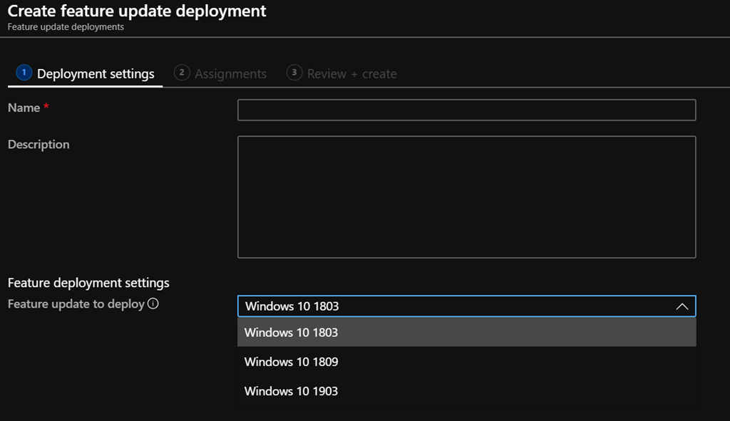 Well, a new policy capability has been added to Intune to let you define the Windows feature update you want to have installed and stay on, called Windows 10 feature updates.