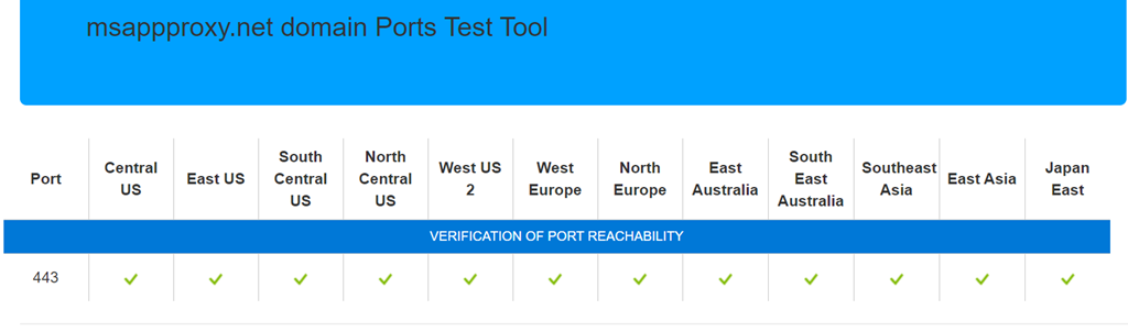 You can test access using the test portal https://aadap-portcheck.connectorporttest.msappproxy.net/