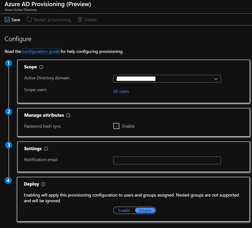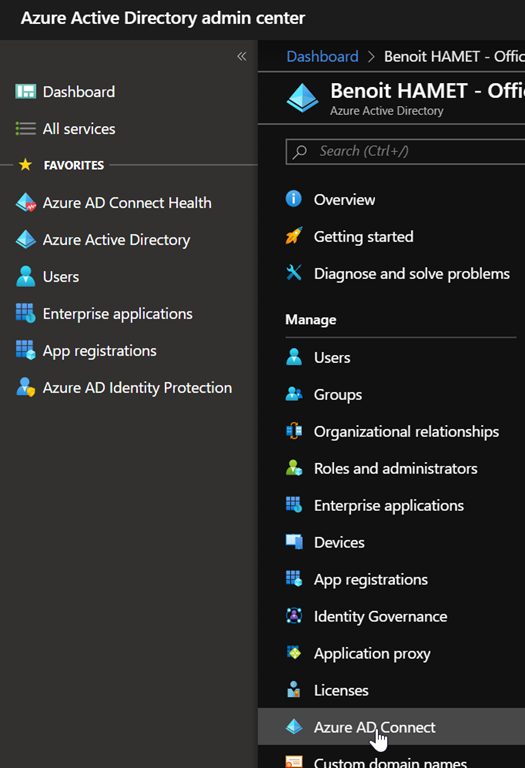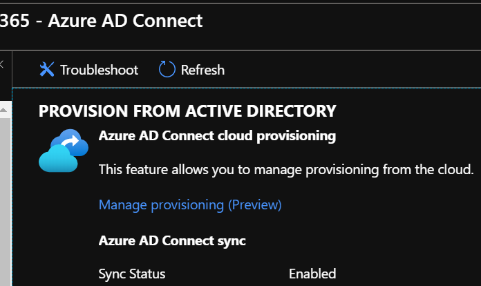 Once all of these prereqes are matched, you can start using the Cloud Identity provisioning for disconnected AD features by connecting to your Azure portal (https://portal.azure.com/) or Azure AD portal (https://aad.portal.azure.com/) to reach the Azure Active Directory\Azure AD Connect blade