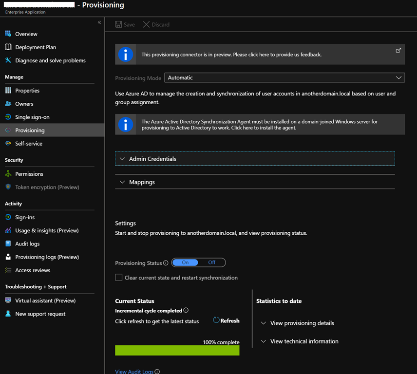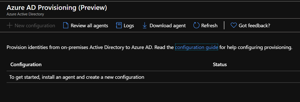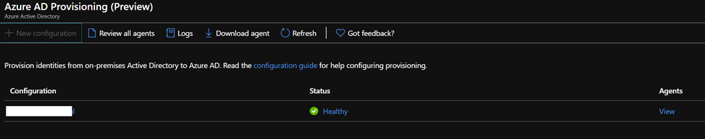 Once the agent(s) is/are registered, when you refresh the Azure AD Provisioning blade, you can confirm the
