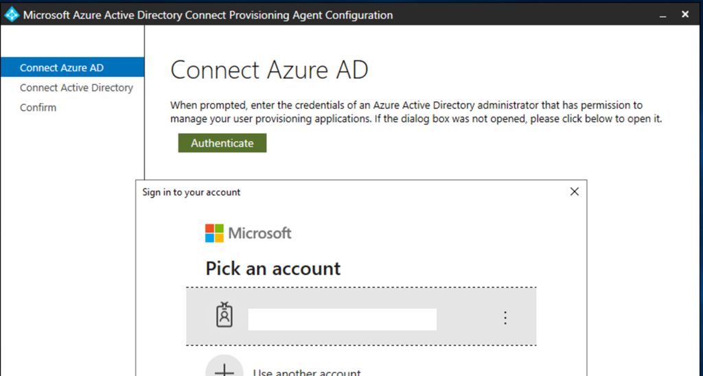 Then the configuration wizard will popup (if not a shortcut is available on the Desktop) and will ask you to connect to your Azure AD tenant