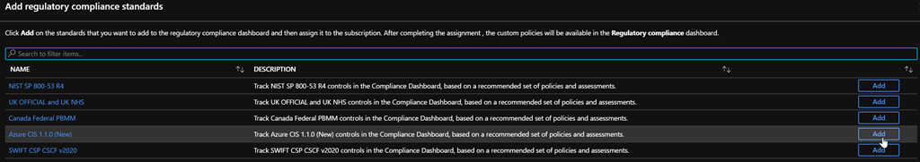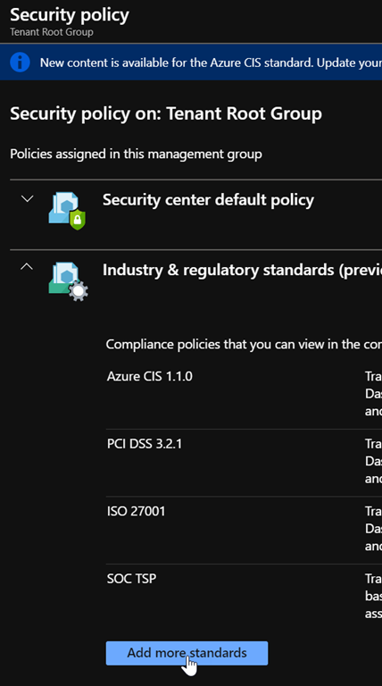 Finally click the Add more standards button available in the Industry & regulatory standards section to add the new Azure CIS