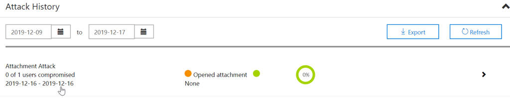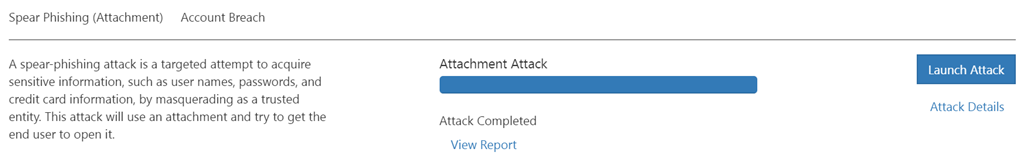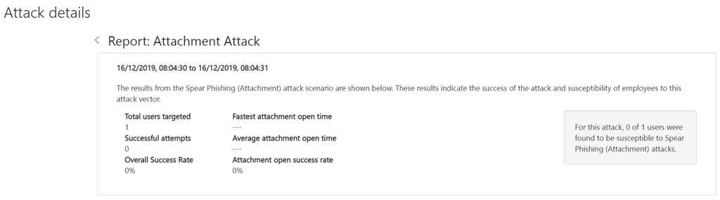 You can than have the attack simulation result by accessing the attack details or the View Report link showing up; you will then be able to access the history (attack details) and results of the simulation