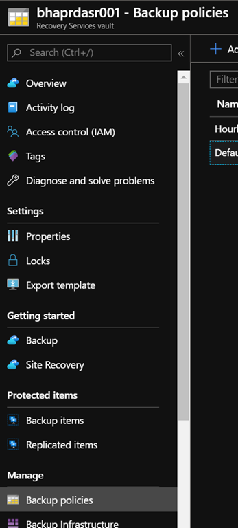 Then access the Backup Policies blade (available in the Manage section) and edit the existing policy/ies (or create a new one) and define the naming convention with the Azure Backup Resource Group field