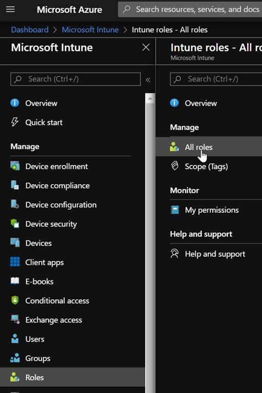 You can start using this new role by assigning to the groups/users you need using either the Azure portal by then going to the Intune service (https://portal.azure.com/) or the Endpoint/Device Manager portal (https://devicemanagement.microsoft.com/) and then going to Roles\All Roles configuration blade