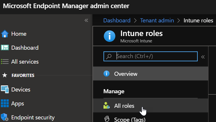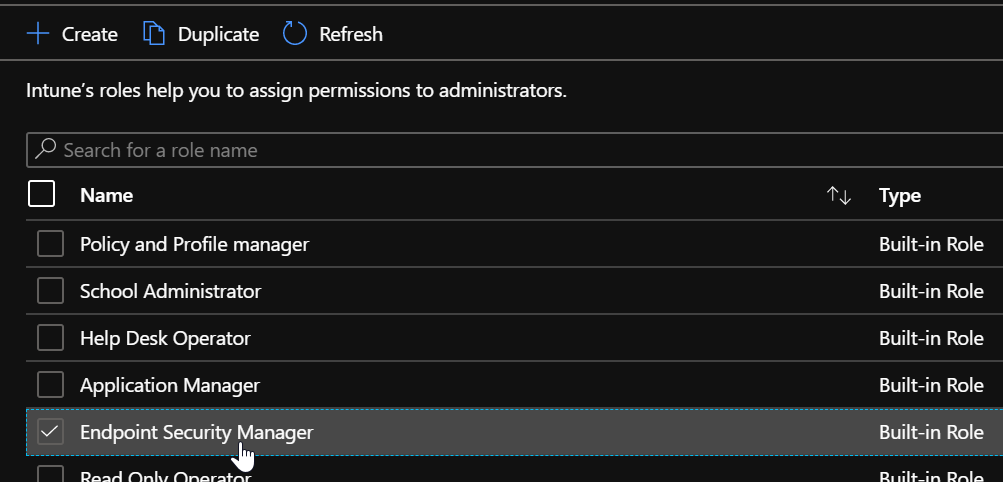 A new administration role for Intune has been made available – Endpoint Security Manager.