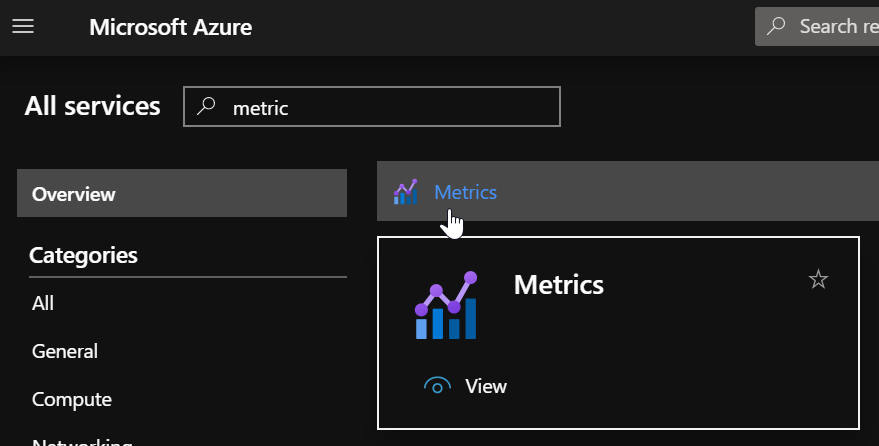 To start using the multi-resource selection, you need to logon to your Azure portal (https://portal.azure.com/) and then search for the Metrics service