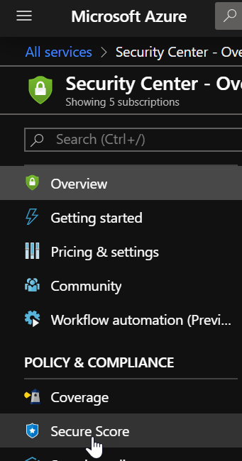 To start using this new and simplified Azure Secure Score, logon to your Azure portal (https://portal.azure.com/) and reach the Azure Security Center and go to the Secure Score blade