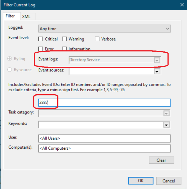 - Then you have to check for the Event ID 2887 (generated every 24 hours); if you got some events (especially recently – my below example is from December 2019 and has nothing earlier)