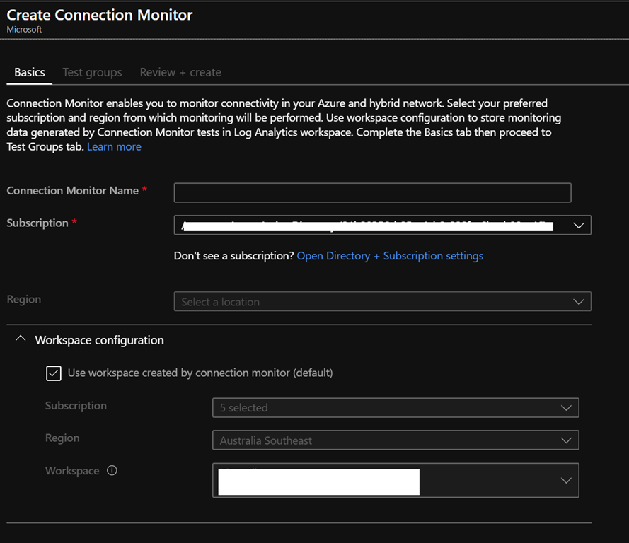 Create a new connection monitor