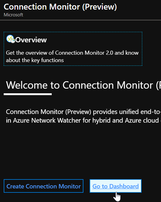 To start using this new connection monitor, connect to your Azure portal (https://portal.azure.com/) and search for Network Watcher