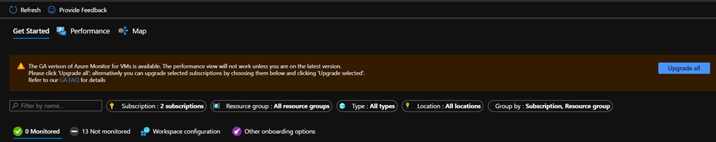 If you click on the Upgrade all link from the banner, you will get the list of all resources going to be onboarded using the new monitor or similar information will be provided if you choose to update only certain type of resources (virtual machines, Workspace…)
