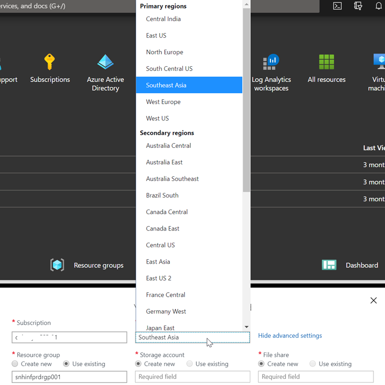 Well, until today, there was only a limited number of region available for creating the Cloud Shell storage account used.