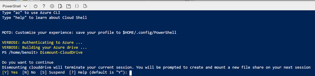 To dismount your storage, you can use either the below PowerShell or Bash commands