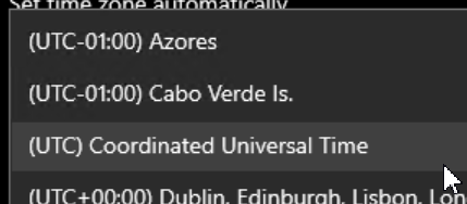 tzutil /s “UTC”