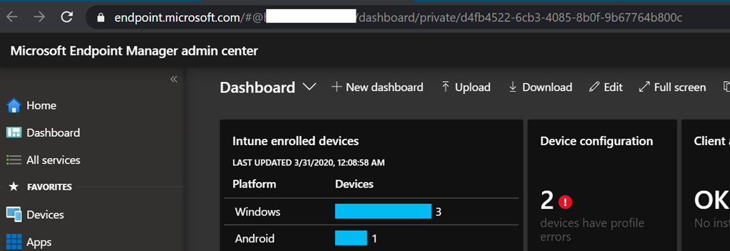 While other portal URL’s (https://devicemanagement.microsoft.com/ and Intune blade in Azure portal https://portal.azure.com) will continue to be available, it is recommended to start using this new URL as they will likely start redirecting to the new one and ultimately being removed.