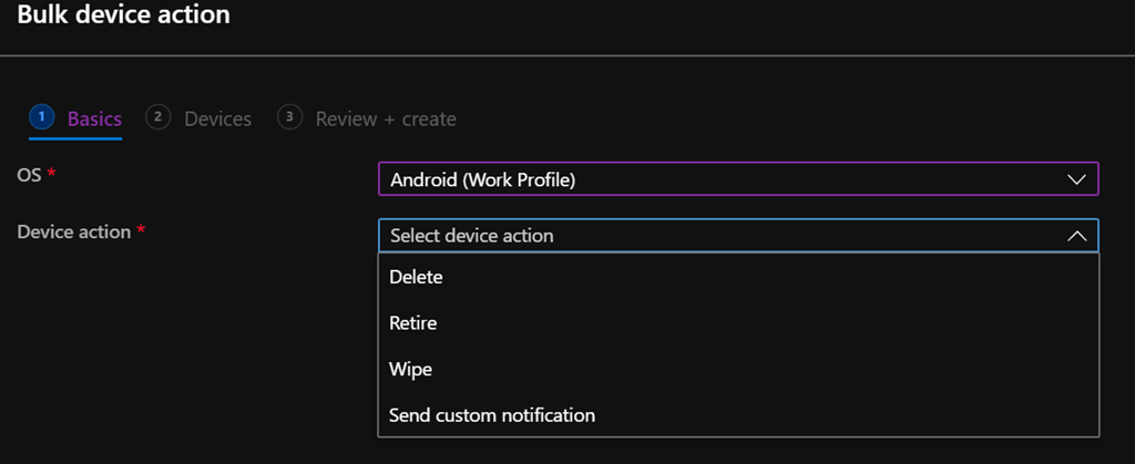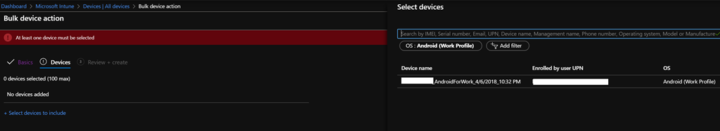You may not have a noticed but you can now perform bulk actions (delete, retire, wipe or send custom notification) on devices registered in Intune/Endpoint Configuration Manager.