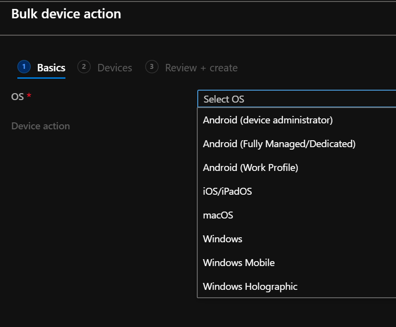 Then you need to choose the device OS (Android, iOS, Windows…) and the action you want to perform
