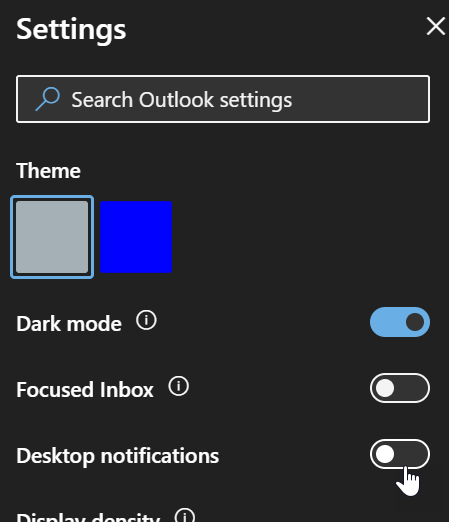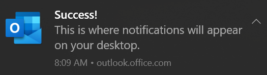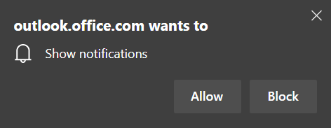 After turning the option on, you may get a prompt from your browser asking confirmation to allow outlook.office.com to Show notifications