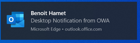 If you use Outlook Web Access (aka OWA, aka Outlook on the Web) and a modern browser (Google Chrome, Microsoft Edge) you can now enable Desktop Notification to get notified when emails arrive while you are no longer browsing your mailbox but your browser is still running.