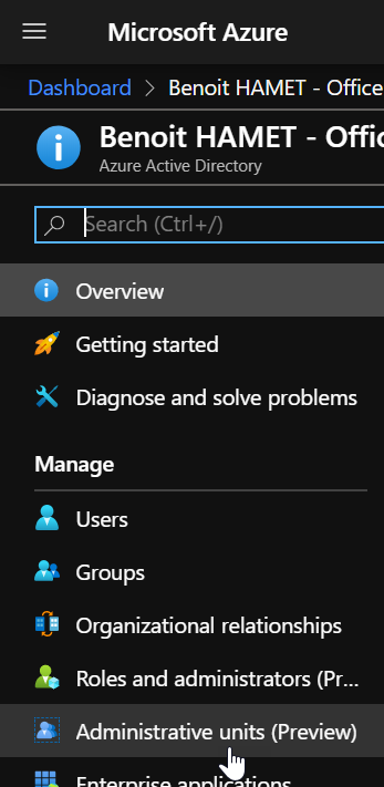 Once logged on your Azure AD, reach out the Administrative Units blade