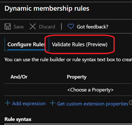 Then either create a new dynamic group or edit an existing one; you will find the Validate Rules option on top of the rule section